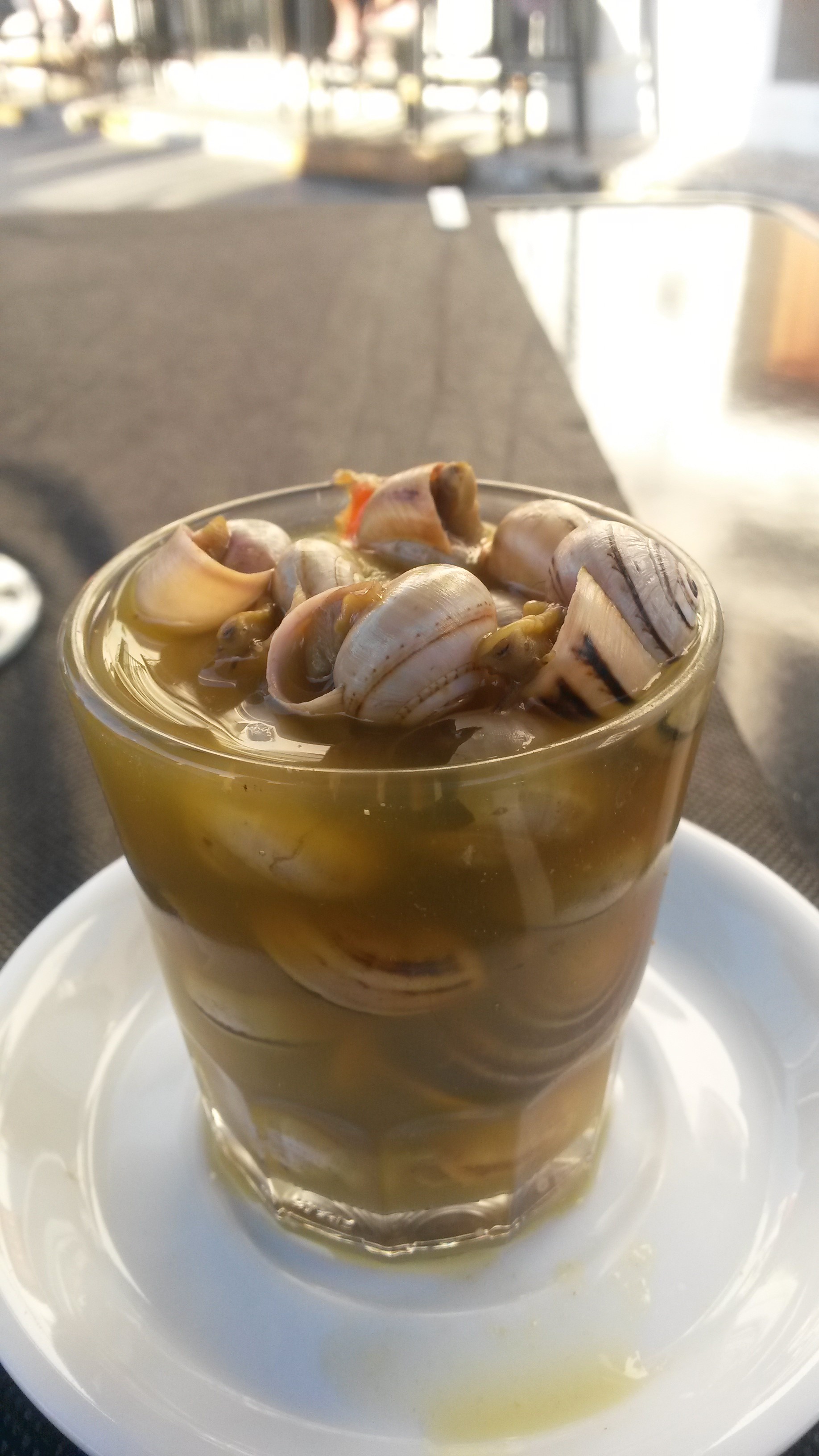 Dining in Spain is almost always a great adventure. I am an avid fish and seafood lover, and there is seldom a day that goes by when I haven’t had several of the many creatures available in the local Mediterranean waters. I am constantly trying new items from the sea including things we may have one of in California, like calamari. Here the calamari are large rings, about the size of onion rings, and often cooked by breading and frying. I find them too tough. Then there are “chopitos,” whole baby calamari with ink sacks intact, which are best when fried with a light almost-panko like crispness. Sepia is a cousin of sorts of calamari, which is larger and thicker, and is often grilled and served with a green “marinera” sauce, mariner’s sauce, not to be confused with the Italian tomato sauce, “marinara.” I have found some foods to not be worth the effort involved in trying to eat them. After a recent intense Zumba class, I went to a local tapas bar, regularly patronized by cordial smoking, drinking “abuelas” (grandmas) and their grandbabies, (and I mean no disrespect but it is very different than when I lived in San Luis Obispo county, California, where they were the first place to outlaw indoor smoking or smoking near food service.) At the café, I was told the grill had been turned off, but the fryer was working, so I ordered “patatas bravas” (spicy fried potatoes, which are not spicy if someone eats habanero sauce like I do), and fried fish. Note to self: check the type of fish before ordering. They were sardines and other equally small fish, which with my knife skills, yielded few consumable morsels. And the incredible number and quality of bivalves! Almejas (clams), berberechos (smaller clam-like content, with a scallop taste), the itsy bitsy tellinas (too much work), razor clams, mussels, oysters, gooseneck barnacles, and more.